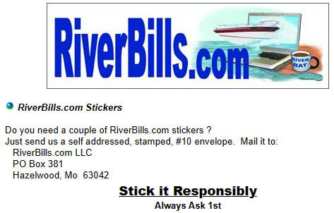 Page contains river news, RiverBills Pictures of the Day, Upcoming River Events, info from RiverBills.com advertisers, etc..... click here and check it out