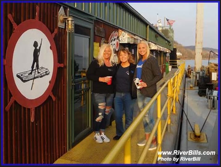 Jill, Mary and Alexa, representing RiverBills on the Living Lands and Waters Classroom Barge in 2018 at their party at the Loading Dock in Grafton, Il