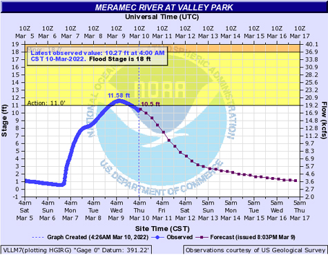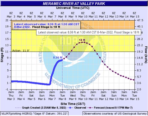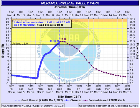 Meramec River at Valley Park at 4amThis Morning 03-10-22