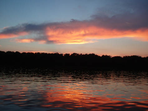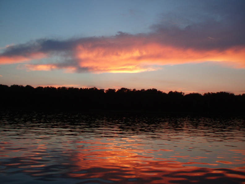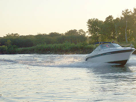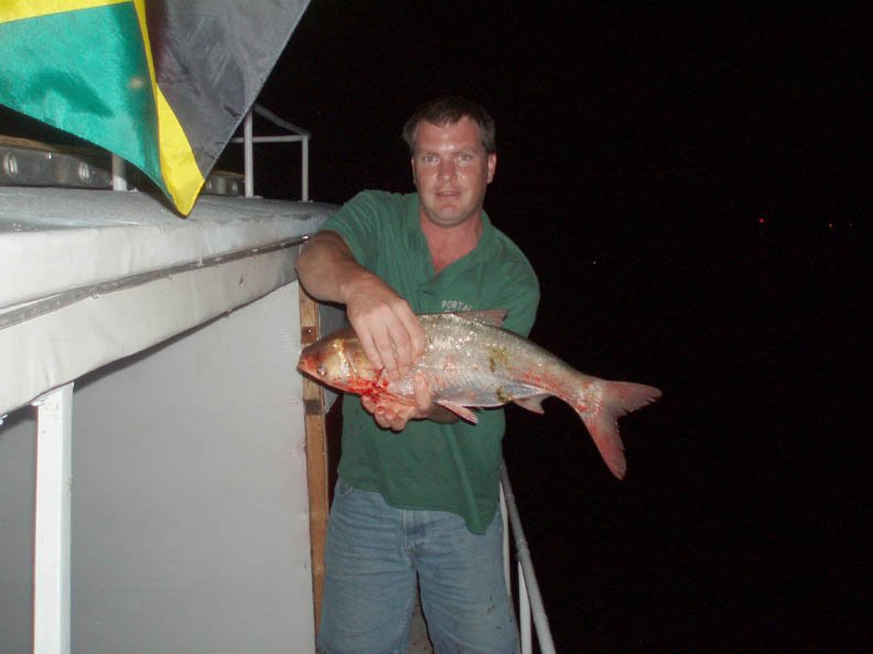 To top it all off..... we pulled Bob's Jon Boat behind the Red Neck Woman as we motored home .....He landed 5 of the flying carp without even being in the boat ! |