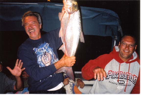 | " Bob Hampel holding the catch & Bob B. looking on " |