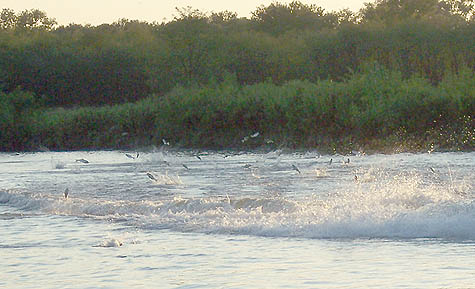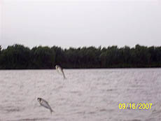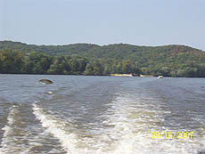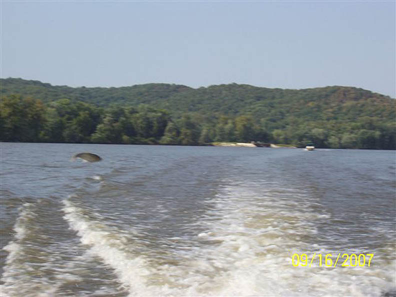 Bill , Marsha and I took our friend, Brent, for a tour up the Mississippi yesterday before they head back to Lake Michigan. On Our way back to Alton we met up with some friends of ours in the cove and we really got into the flying fish on the way in and out. Took a Couple Pic's on the way out. The Carver is Driven by Captain Randy Springman of Alton Marina, They were going Crazy behind his Boat. Carl