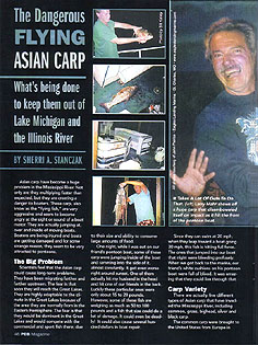 The boaters pictured in the magazine article are as follows: Dean Stockton...in the green shirt (page 46) Larry Mahr.........in the light blue t-shirt holding Asian Carp (page 46) Bob Hampel ......holding the Asian Carp in the blue sweatshirt (page 46-47) Bob Bindner...... in the red "Fox Racing Shirt" of Eagles Landing Marina (page 47)