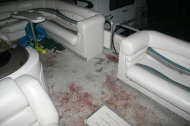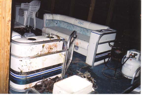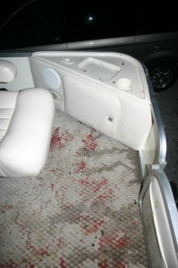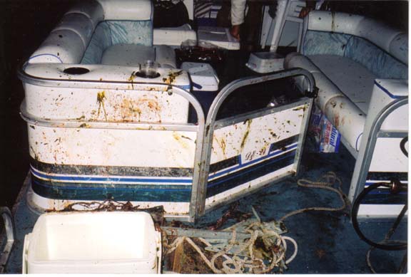 | " It ended up inside the pontoon boat after it flopped around and knocked the gate open " |