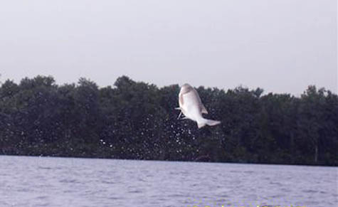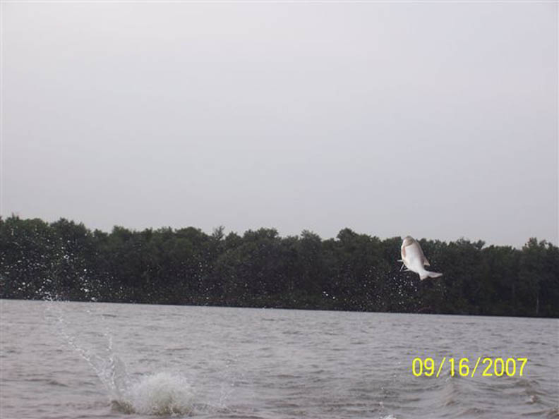 Hey Bill. I "caught" my first Asian Carp last night. it was a little over a 2 footer. Jumped straight up from the bow, flew about 9' thru the air, and smacked me in the hip before it fell to the floor. Blood everywhere, and so slimy I had to pick it up with a towel so I wouldn't loose my grip Robert Cope