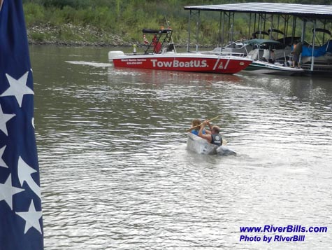 Headed for the finish line Rich and Tyler are out ahead by a boat length The Rebneck Princess is closing in fast !