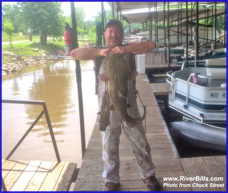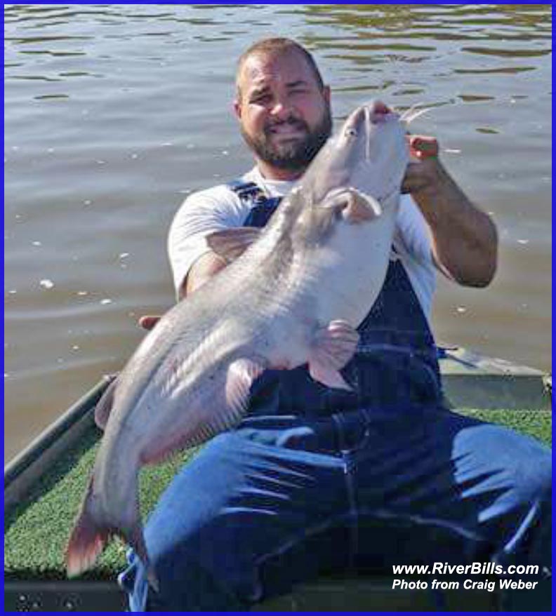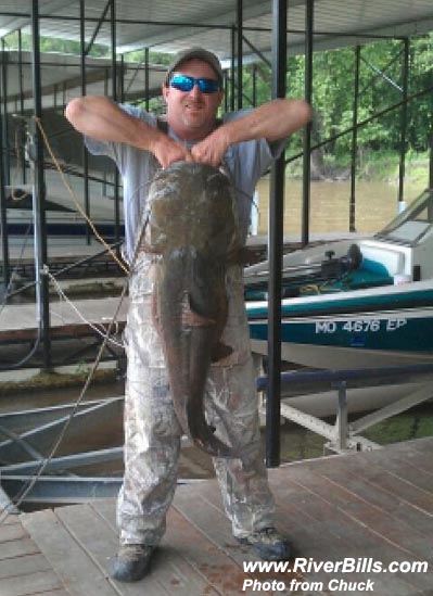 record for blue catfish is 103 pounds, was caught in the Missouri River by