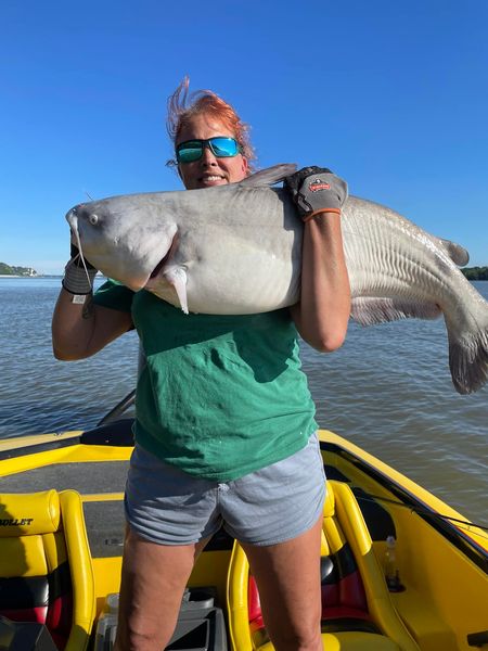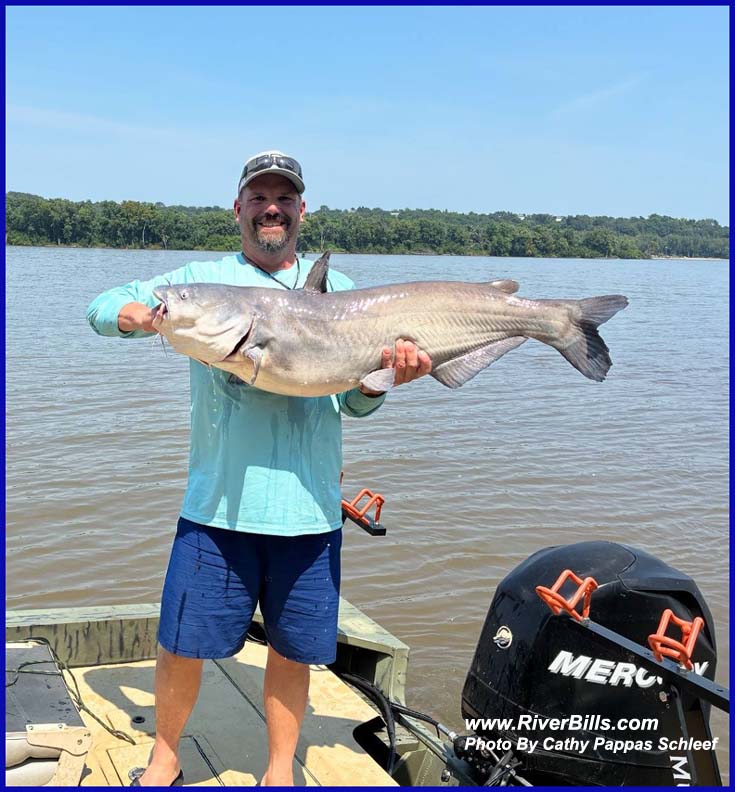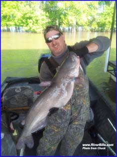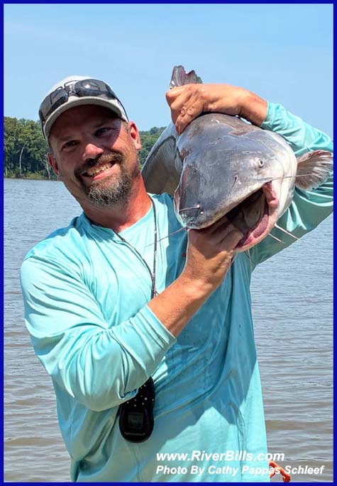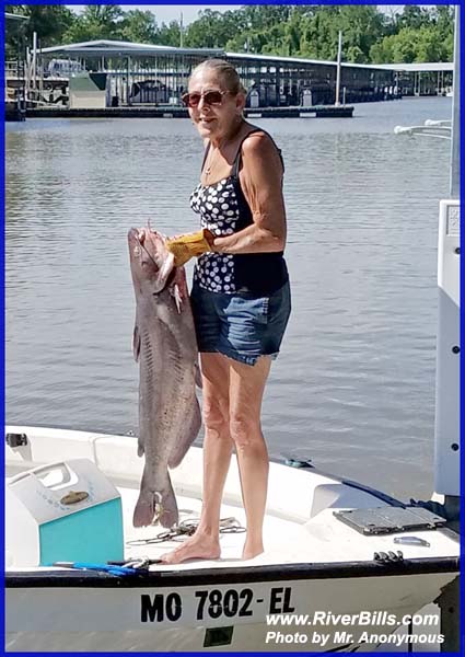 I caught this blue cat Thursday, August 2nd, 2007 near Alton on the Mississippi River. She was photographed and released.