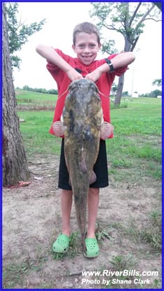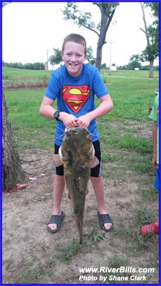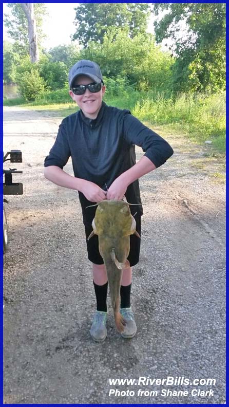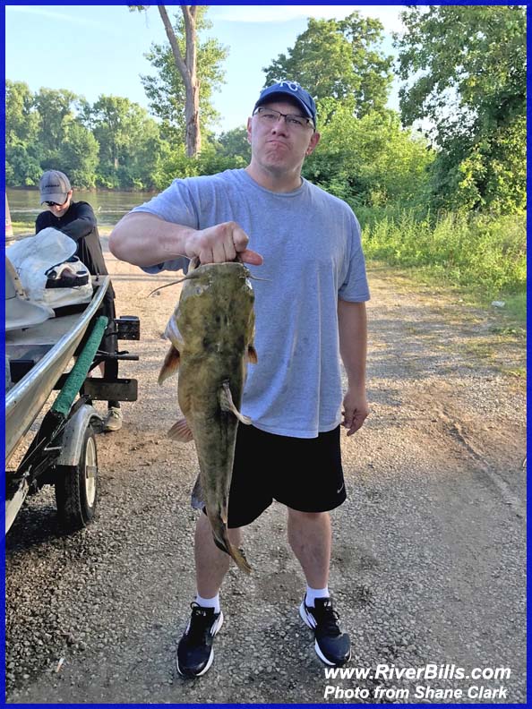 Fels and the flathead catfish he caught Friday on a