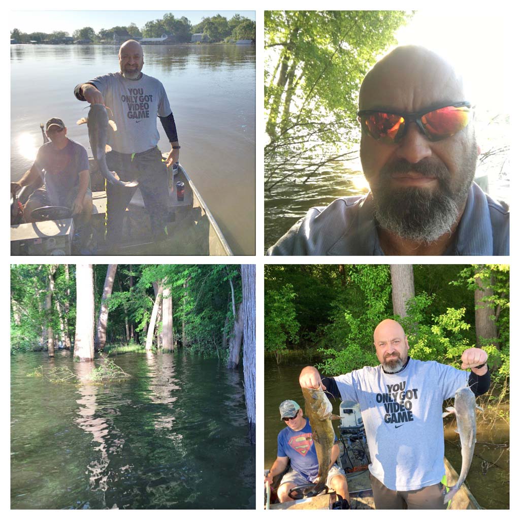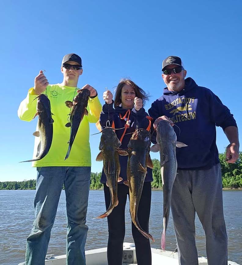 Named Phoebe, and his son with some more big catfish. They caught all