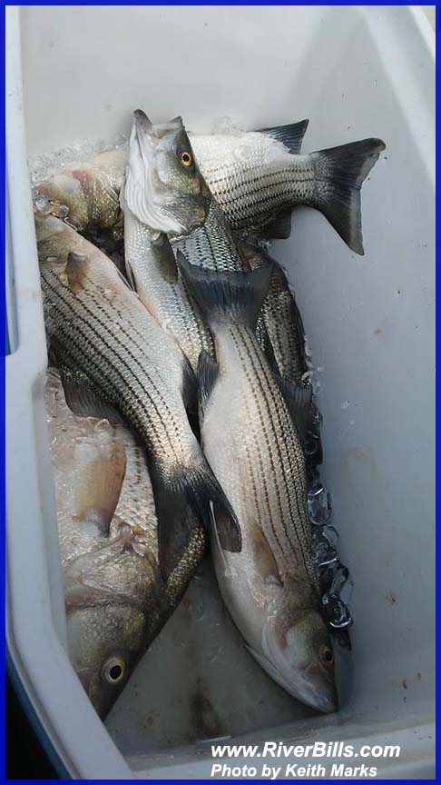 cats are noted for feeding beneath marauding schools of striped bass in open