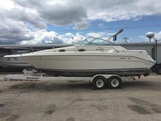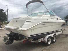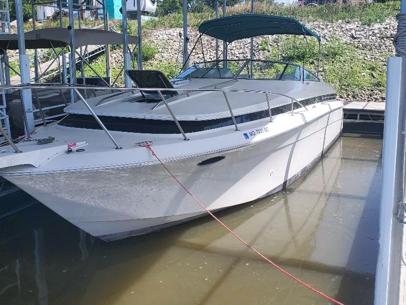 Mercury 454 MPI (217 hours), brand new 0 hours Bravo 3 drive with 24 pitch props all work was done by STL YACHT CLUB, Generator, A/C & Heat, Cockpit carpet, double Bimini, cockpit cover, single Ram trim tabs, rear ladder