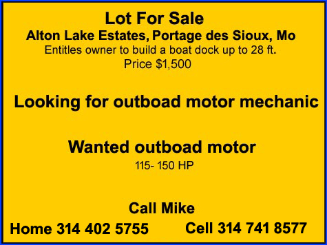 •  Landmail...Send a check to RiverBills.com LLC, PO Box 381, Hazelwood, Mo 63042. Include boat description in note