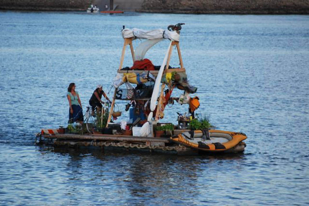 A dock-eye view of the "Recycled Mississippi" boat at Alton Marina yesterday afternoon. Plastic bottles for floatation and a solar panel