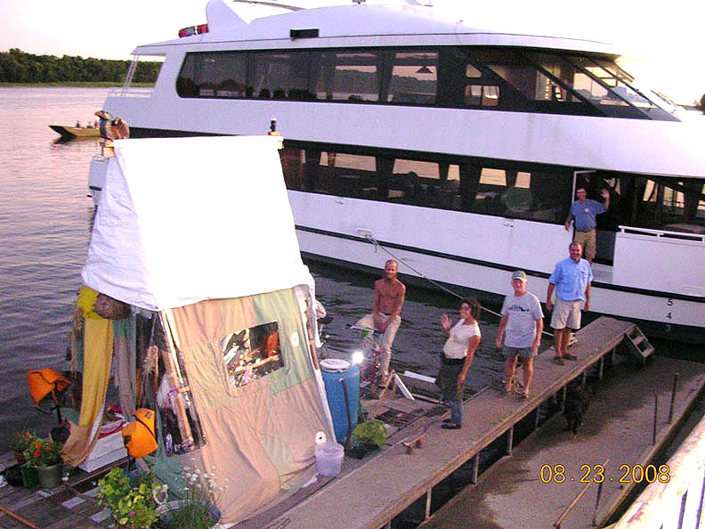 On the hook Saturday evening and watched a couple of kayakers setup camp for the night on the island. On Sunday, the two gentlemen stopped at our boat and told us about their " charity trip," length of the Mississippi, for Keycenters.org.