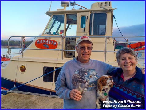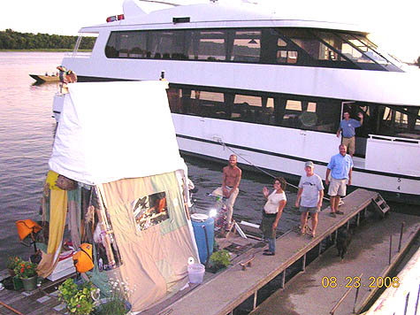 YOU FIND THE RIVER DAWG IN THIS PICTURE ? I took this picture in September of 2004, That's Before I met River Bill !! Taken by the gas dock at Mud Island Marina - Memphis, Tennessee. Mark Krull, Dolph Kraus, and I were on our way to Miami on the "Miami Magic". This boater was on his way to Key West from Minnesota, and this was not his first time making the trip. (Different Boats). He told us that he went by the name "River Bill". Bill had lost an outboard motor in the Alton pool, hitting a large submerged log. Grafton is where he replaced it with the one you see in the picture.