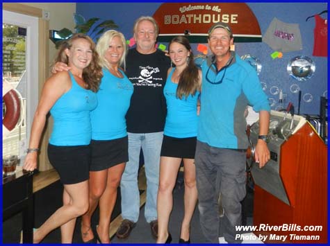 Henk Van Der Klock's Party at the Boathouse The RiverBills Girls.....Sherri, Jill and Emily with RiverBill and Henk
