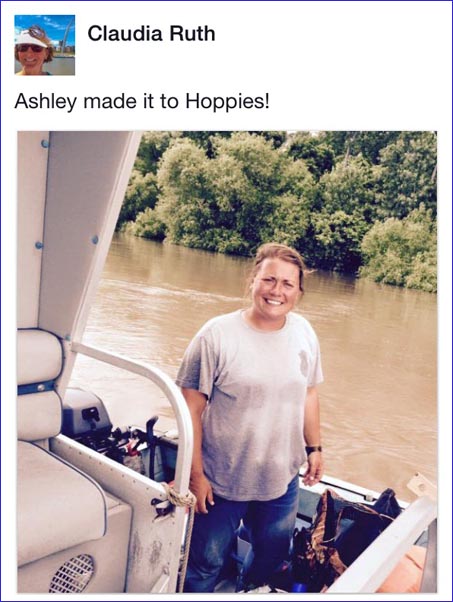 It's a couple of pictures of Ashley, who is traveling the length of the Mississippi River in her jon boat. Greg has been talking to her by phone and she made it to Woodland Marina on Thursday evening. Later on they cruised over to Grafton Harbor in Ricky Phillips houseboat.