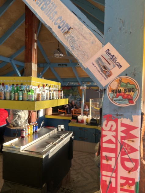 RiverBill Sticker Sighting and MaryBeth at Moms Place, Seven Mile Beach, Negril, Jamaica
