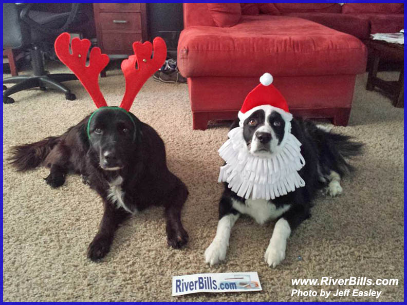 Dogs Ellie and Chuck want to wish everyone at RiverBills a Merry