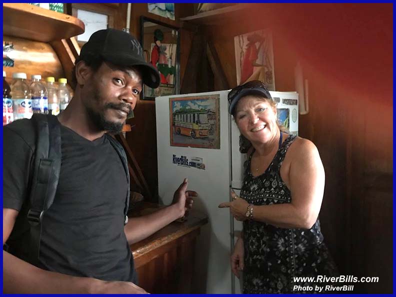 RiverBills Sticker on the bar fridge at Sir D's Fire Water Love