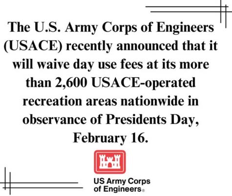 Day use fees waived at Corps' recreation areas for President's Day